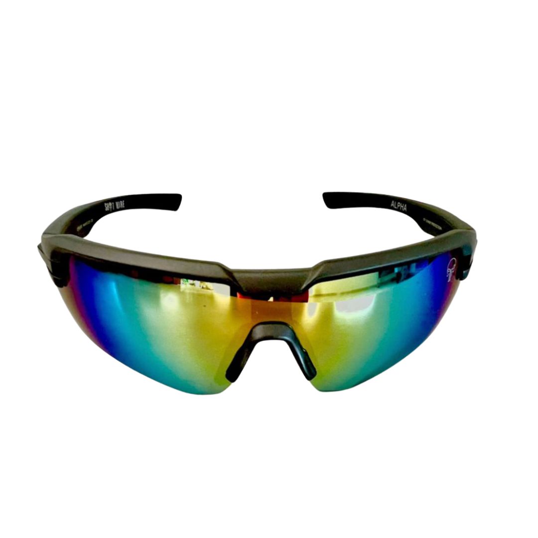 Armação grafite e lente espelhada Camaleão. Mais indicado pra ambientes abertos ao sol.