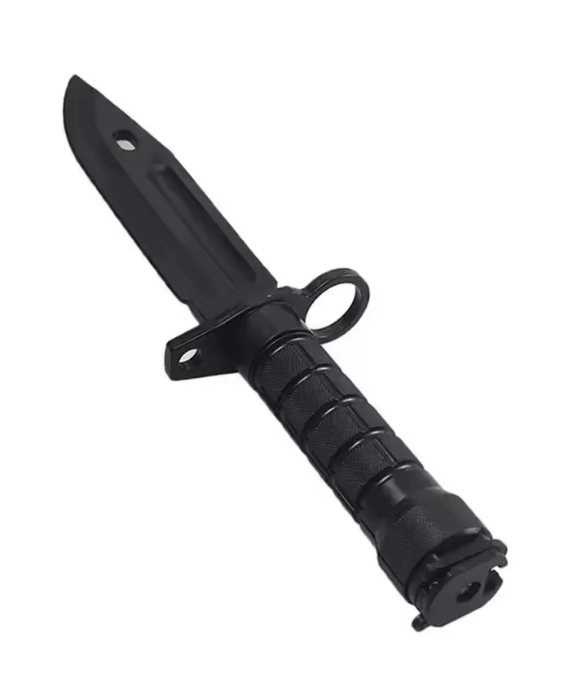 Faca Fake Baioneta estilo tática Ideal para esportes nas modalidades de Airsoft e Paintball Milsim/RA. Faca perfeita para realizar rendições em seus adversários descontraídos. Com seu designer personalizado que proporciona ao jogador um nível intimidador aos adversários. Uma Faca muito leve com acabamento acabamento macio e estrutura resistente proporcionando flexibilidade e agilidade para o jogador. Ótima fixação e encaixe na cintura, colete, além de possuir baioneta para fixação no cano da arma/marcador. Um produto para quem quer fazer a diferença e se destacar entre os demais.